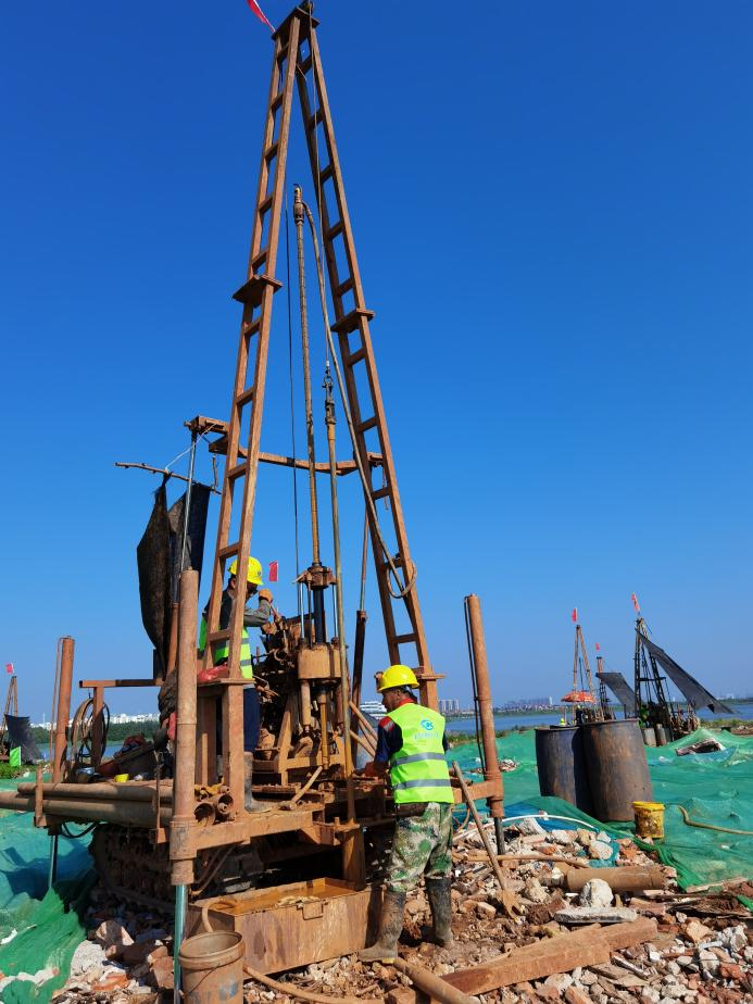 公司所屬新區(qū)分公司組織高水平項目團隊,正按建設(shè)方及設(shè)計單位要求,緊張有序地進行巖土工程詳細勘察工作。在實施過程中,為確保作業(yè)進度和防治安全隱患,項目團隊積極協(xié)調(diào)水務、燃氣、電力、地鐵等管理部門及拆遷單位,嚴格落實安全保障措施及環(huán)保措施,切實做到“零”安全事故、“零”環(huán)境污染事故和“零”管線安全事故。項目團隊現(xiàn)已投入18臺鉆機和3臺靜探車加緊作業(yè),確保項目按期交付。