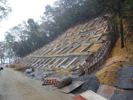 我公司承擔的東湖風景區(qū)楓都山滑坡治理項目目前實施順利,已完成邊坡支護格構梁的施工。