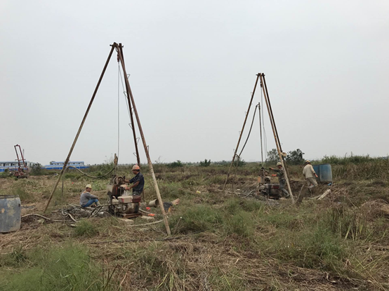 本工程勘探工作量大,任務重,勘察范圍基本為原始地貌,涉及大片灌木叢及大片藕塘,施工環境非常復雜,再加上臨近十一國慶假日,鉆探工作人員心思有所松懈,種種困難給外業工作帶來了巨大挑戰。面對困難,項目成員積極開展協調工作,調配挖機快速清理場地解決進場施工難題;公司專業總工對外業生產進行現場技術指導,為項目的順利開展提供了強有力的技術支撐;開工前對現場鉆探人員進行了技術交底、環安教育及思想工作,節假日期間項目成員及鉆探人員堅守崗位,加班加點,保證外業進度的同時,也不懈怠安全生產及質量把控,使得勘察工作有條不紊的進行。