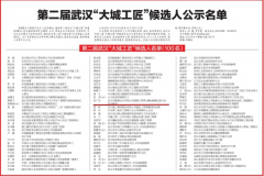 為了大力弘揚工匠精神,厚植工匠文化,進一步激發廣大職工凝心聚力、拼搏趕超的工作干勁,市總工會于2018年8月起在全市范圍內開展了第二屆武漢大城工匠選樹工作。評選活動歷時4個月,經各基層單位民主推薦、公示、評委會辦公室初審、專家評審、市總工會主席...